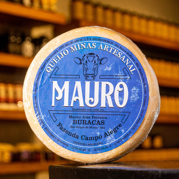 Sabor único do Queijo Canastra do Mauro, uma verdadeira delícia artesanal produzida na região das Buracas em São Roque de Minas por Mauro José Ferreira e sua família. Feito com leite cru de vaca e maturado por aproximadamente 15 dias, o queijo mauro apresenta uma casca amarelo palha com um leve mofo branco natural.