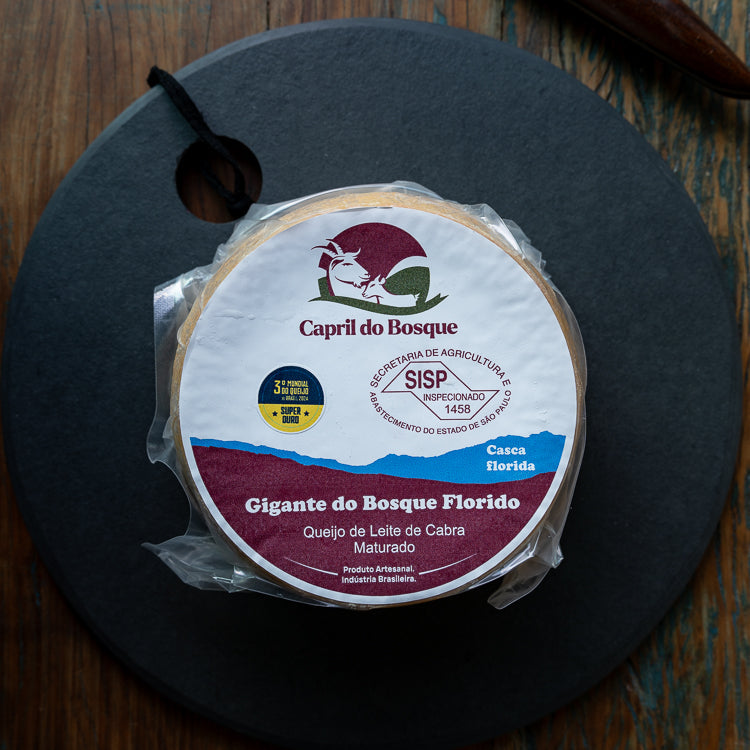 O Gigante do Bosque Florido é um queijo de casca florida feito com leite de cabra de altíssima qualidade. Produzido artesanalmente, ele expressa a essência da natureza e da tradição queijeira, com sabores complexos e textura refinada. Sua casca desenvolve uma flora natural rica, com aromas e sabores que remetem ao bosque, enquanto a massa apresenta suavidade e elegância.