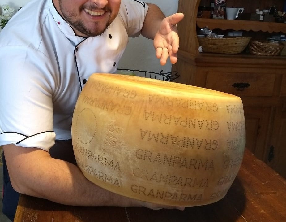Conheça o Queijo Grana Gigante Panela De Queijo Meia Forma, produzido em Cachoeira de Minas pela Fazenda Granparma. Mundialmente conhecido como o “Rei dos Queijos”, o Queijo Tipo Grana Granparma segue rígidamente a fórmula ancestral italiana, sendo elaborado com leite cru de vaca. Apresenta uma forma de tambor, pesando entre 30 Kg, com casca muito dura, de cor amarelo forte, textura lisa e normalmente oleosa. O Granparma passa por um período de maturação de, no mínimo, doze meses em ambientes com temperatura e umidade controladas. Esse processo gera as propriedades típicas do produto, como sabor, aroma e granulação. Em seu interior, os cristais garantem uma textura inconfundível, resultando em um produto de sabor e aroma diferenciado.