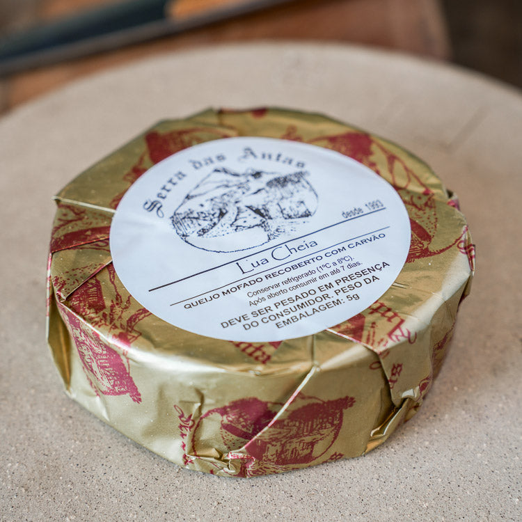O Queijo Lua Cheia é uma criação artesanal e exclusiva da Serra das Antas, que encanta à primeira vista com sua casca escura formada por uma fina camada de carvão vegetal comestível. Maturado por três semanas, este queijo de massa mole conquista pelo contraste visual e sensorial: por fora, um manto de mofos brancos e amarelados, e por dentro, uma pasta cremosa, aveludada e delicadamente doce.