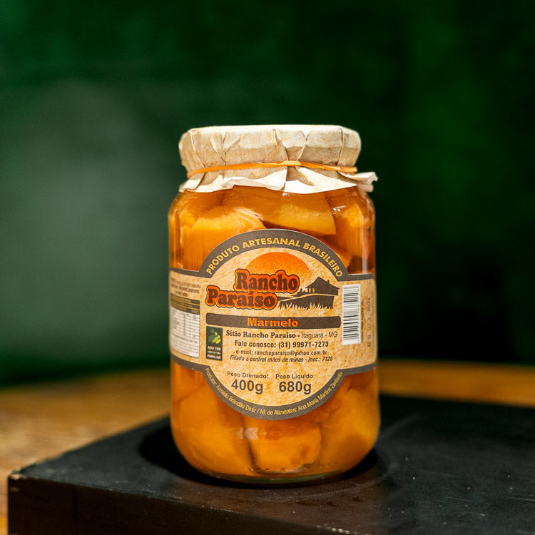 Delicada, aromática e feita com carinho, a Compota de Marmelo em Calda Rancho Paraíso resgata o sabor das compoteiras da vovó. Preparada com frutas selecionadas e cozida lentamente, tem textura macia, que mantém a integridade dos pedaços, e uma calda leve e perfumada, com o toque suave e levemente ácido do marmelo.